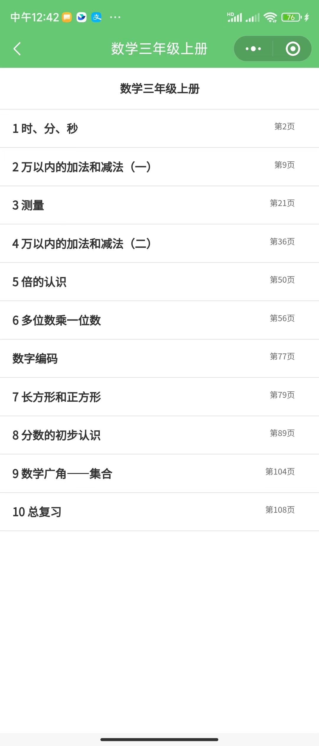 万以内的加减法;多位数乘一位数;分数的初步认识;倍的认识 |