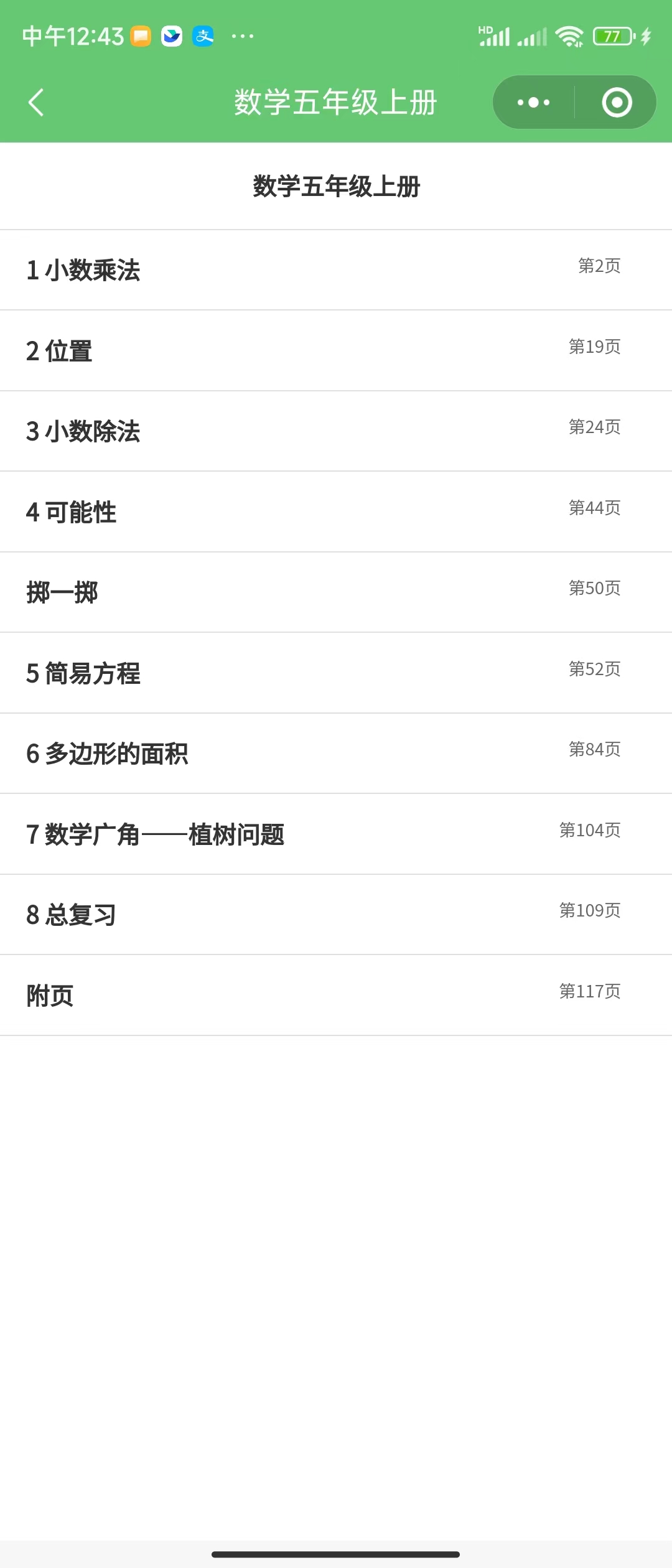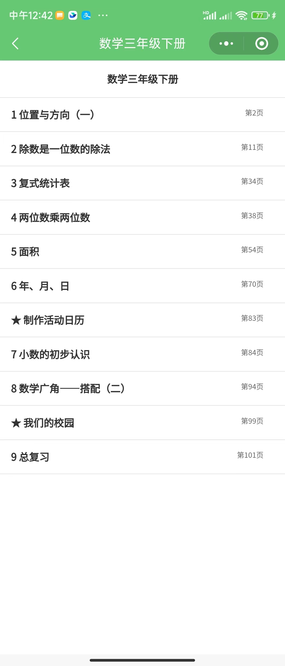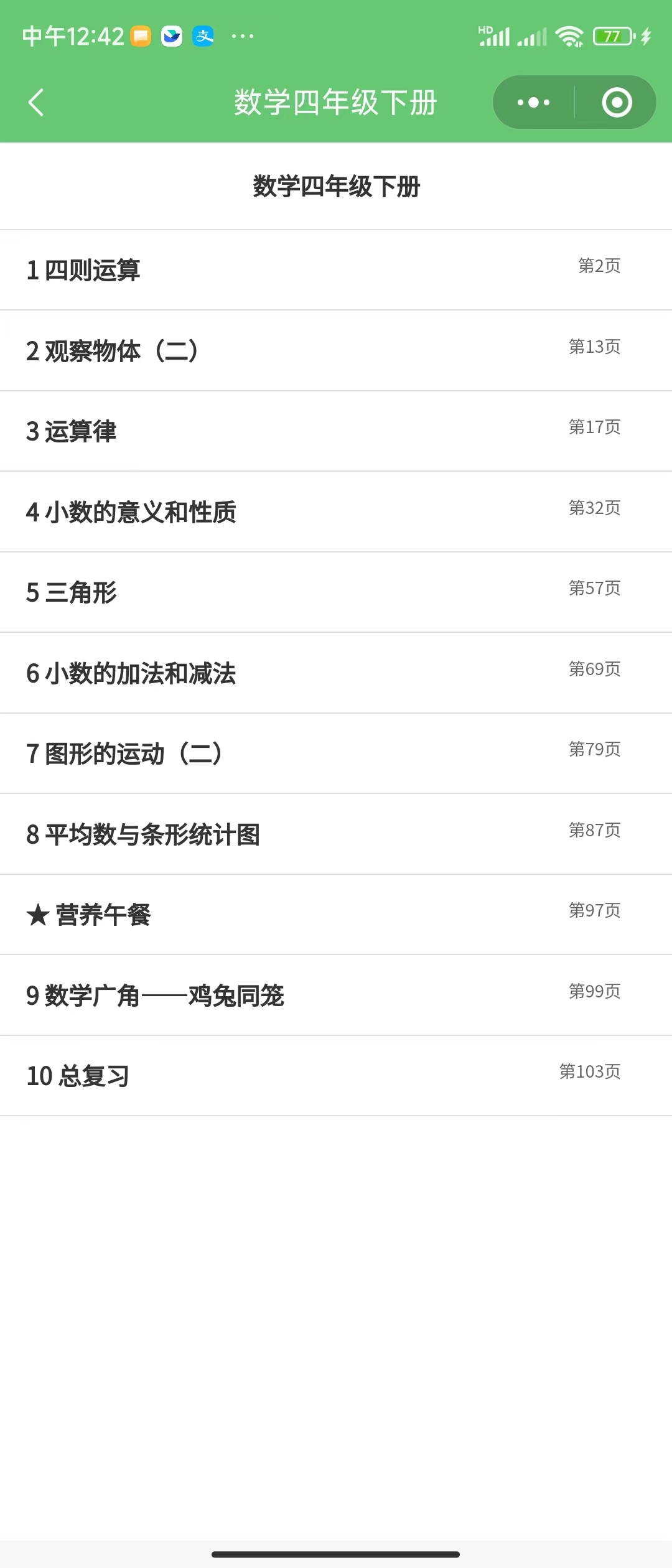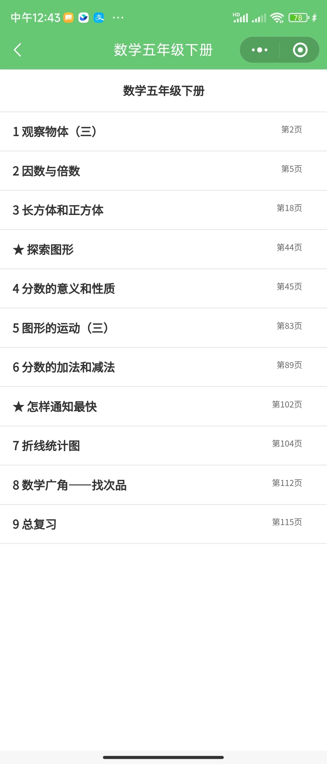观察物体(二);三角形;图形的运动(二):对称和平移 |